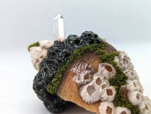 The intricate texture and lifelike form of the growth reveal my deep admiration for the symbiosis between clay and the treasures found in the natural world.